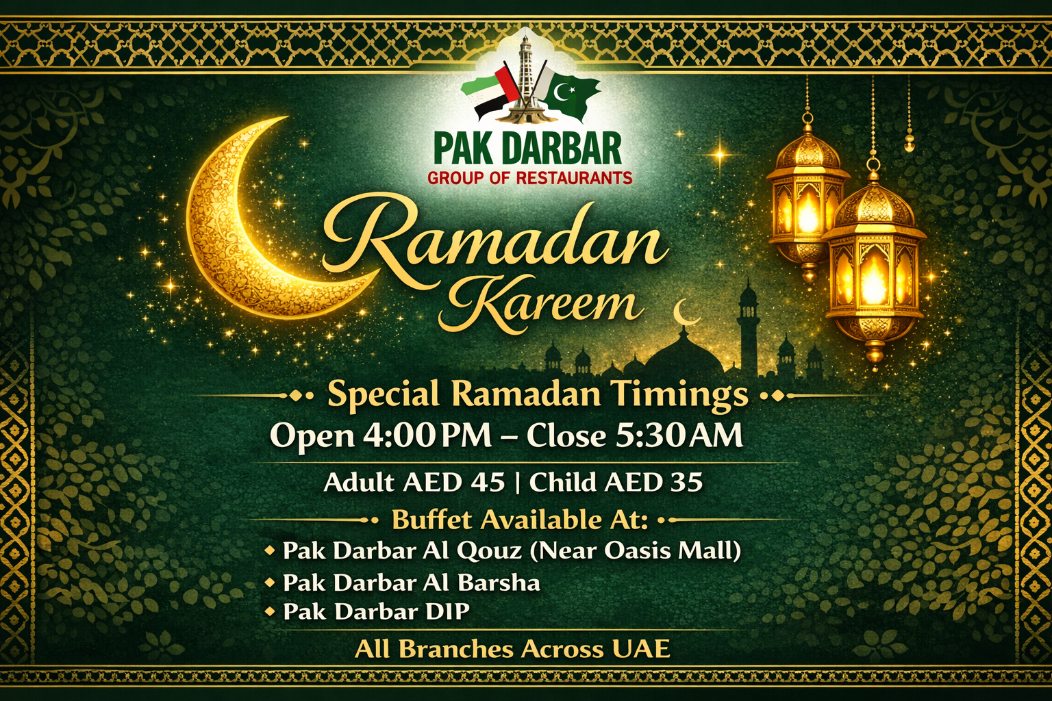Celebrate the holy month of Ramadan with authentic Pakistani and South Asian flavors at Pak Darbar Group of Restaurants.